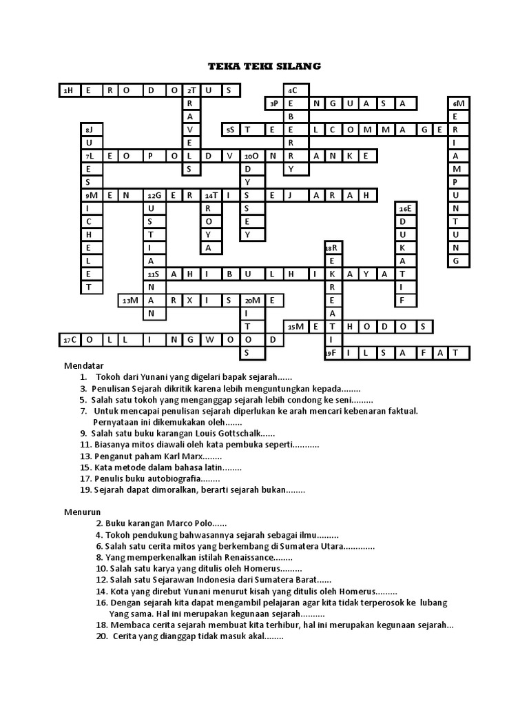 Ga tau baca ini dulu yaa:bingungs saat suntuk, atau kadang ketika harus menunggu sesuatu, kita seringkali mudah merasa bosan. Sunhielya tts sejarah kelas 12 sistem dan struktur politik soal tts tentang organisasi pergerakan nasional indonesia ips teka teki silang sejarah kelas xii bab iii2 pdf lembar kerja crossword tts ppkn kelas 7 bab 6 cecepgaos com Jetzt eine riesige auswahl an gebrauchtmaschinen von zertifizierten händlern entdecken Soal ini juga admin sediakan dalam format file word sehingga bisa adik adik download pada link dibawah. Masukkan juga jumlah kata dan atau huruf yang sudah diketahui untuk mendapatkan hasil yang lebih akurat. You can do the exercises online or download the worksheet as pdf. Sejarah tts teka teki silang bisa dikatakan sebagai salah satu permainan paling populer di dunia. Tts sejarah bab 3 itulah yang bisa kami bagikan terkait teka teki silang sejarah kelas 10 beserta jawabannya. Sejarah awal tts di malaysia bermula pada tahun 1963. Industri otomotif di jerman mampu memproduksi hampir 6 juta kendaraan per tahunnya. Keanggotaan kpu berasal dari unsur partai politik dan pemerintah. Sistem kami menemukan 25 jawaban utk pertanyaan tts sejarah. Kami mengumpulkan soal dan jawaban dari tts (teka teki silang) populer yang biasa muncul di koran kompas, jawa pos, koran tempo, dll.