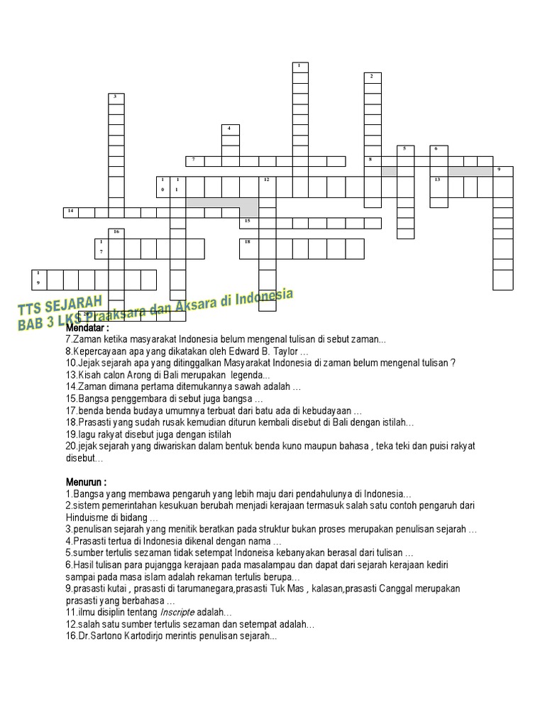 Teka Teki Silang Sejarah Kelas 10 Seputar Sejarah from reader015.docslide.net Ga tau baca ini dulu yaa:bingungs saat suntuk, atau kadang ketika harus menunggu sesuatu, kita seringkali mudah merasa bosan. Sejarah awal tts di malaysia bermula pada tahun 1963. Soal cerdas cermat agama kristen coc youth soal teka teki silang bab 6 uang dan lembaga keuangan. Jacob wadu, dkk(2003) sejarah pemerintahan kabupaten tts.penfui lipi undana. Pengumuman lulus seleksi cpns kab. Sosialisasi perbup nomor 60 tahun 2020 tentang manajemen talenta asn; Tts sejarah interactive worksheet sejarah online activity for 11. Permainan yang satu ini telah meraih sukses besar dalam mengisi ruangan di berbagai media massa di seluruh dunia.