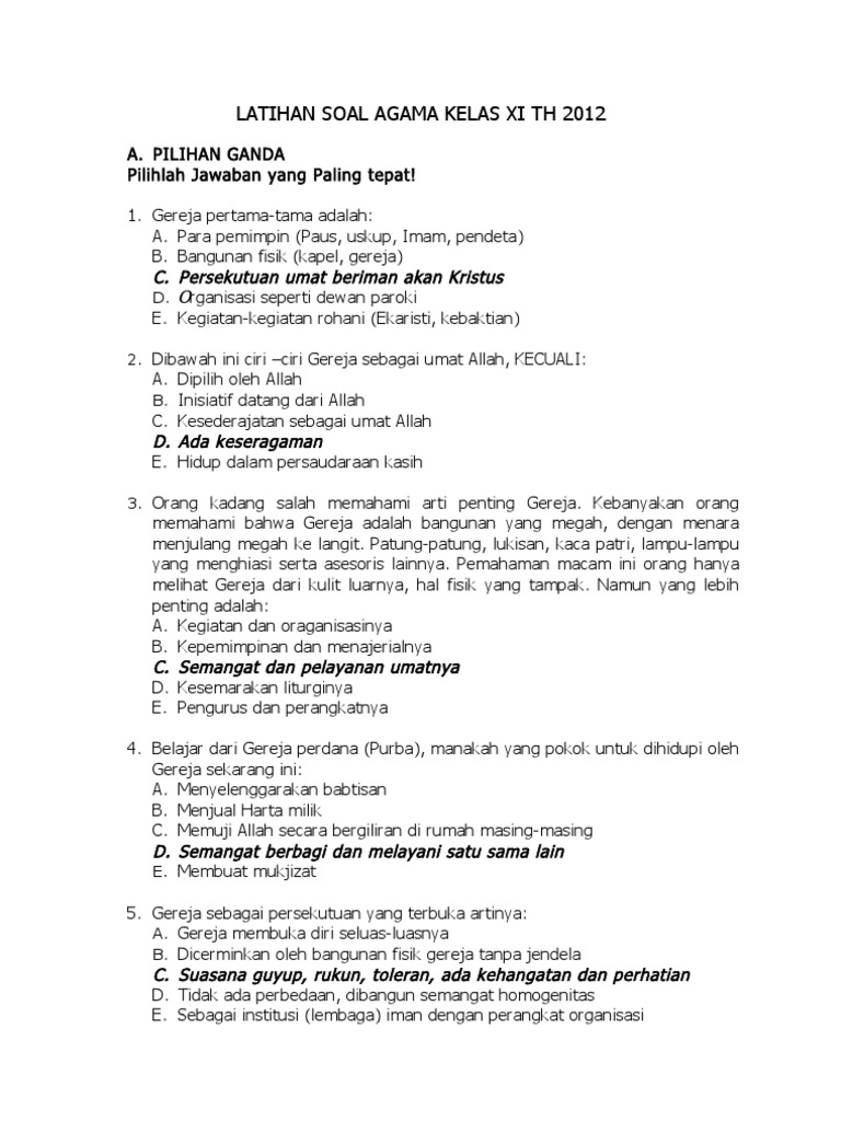 Soal dan jawaban agama katolik kelas 11 semester 1.